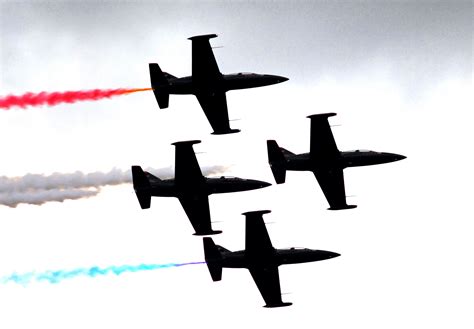 Stock Photo of Four L-39 Jets Flying in Formation Leaving ...